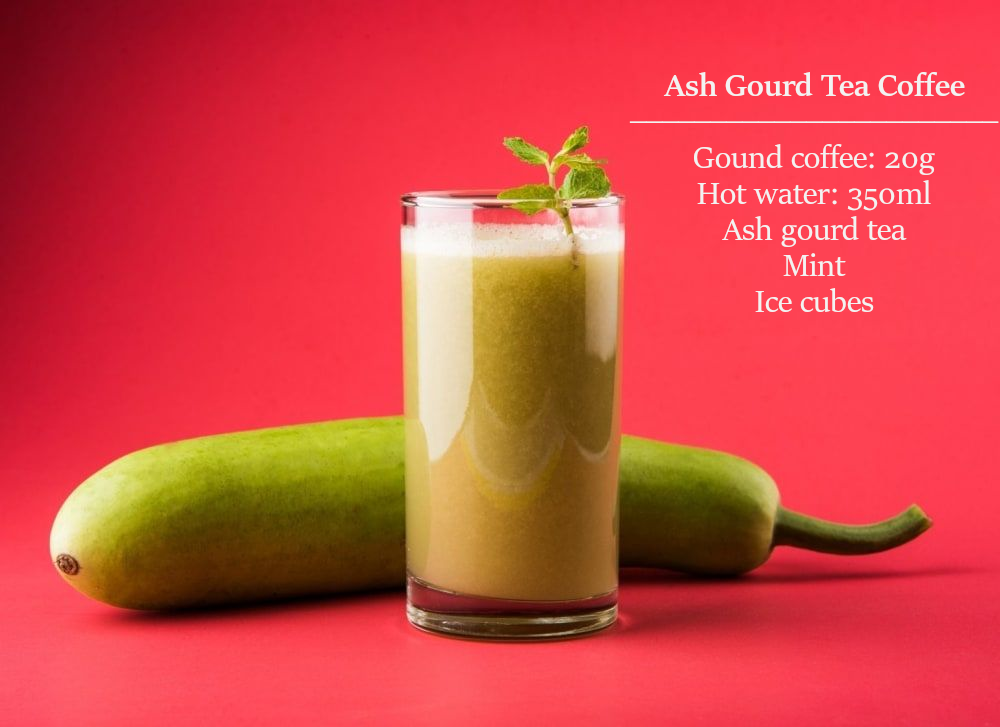Ash gourd tea freshness at the beginning, a little bit of coffee bitterness at the end taste, a refreshing beverage for you in summer days.