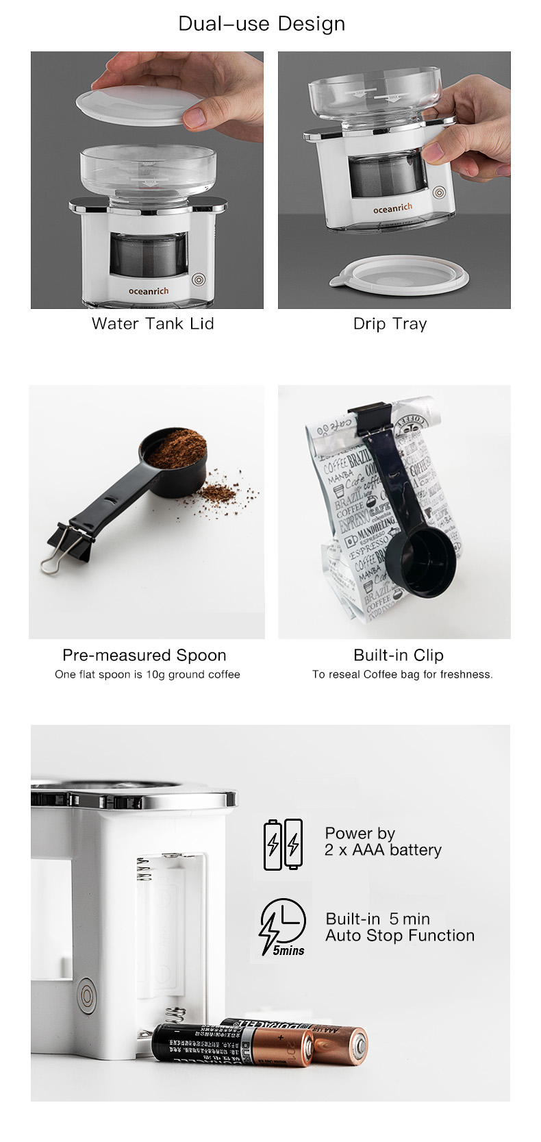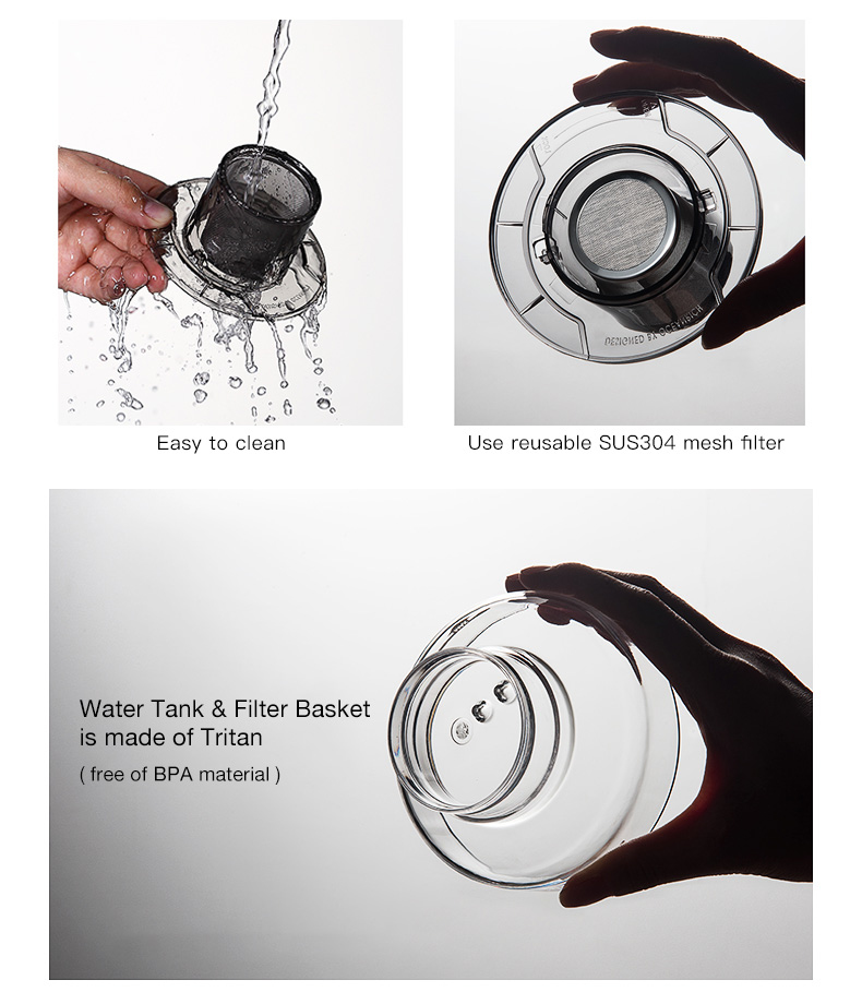 Just add hot water to the automatic rotated water tank, and a perfect cup of coffee will be ready in a couple of mins.