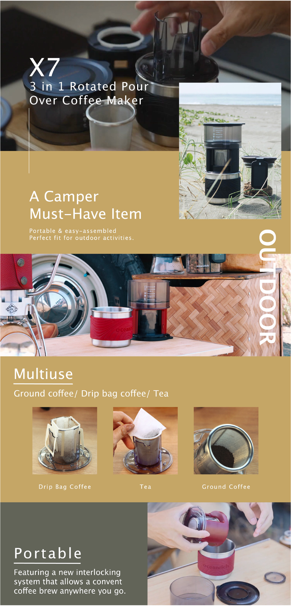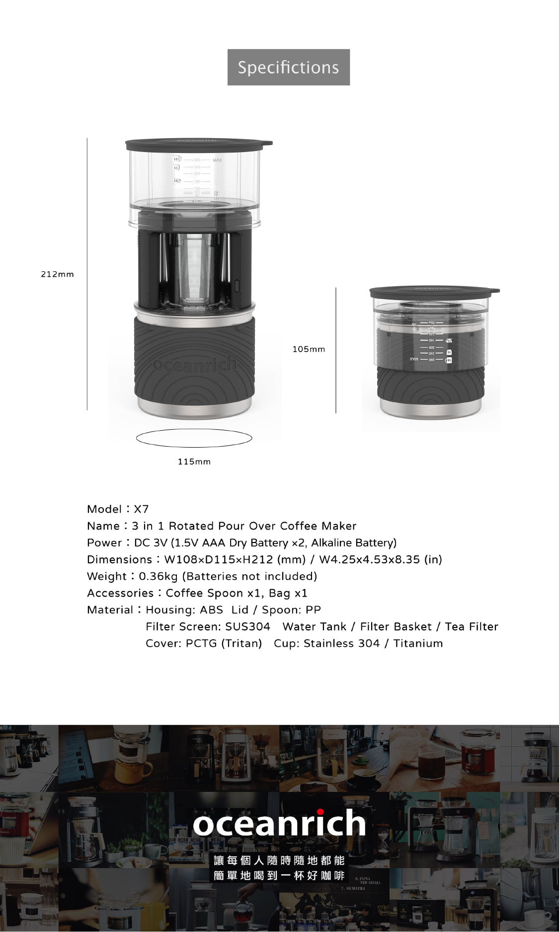 X7 3in1 Rotated Pour Over Coffee & Tea Maker