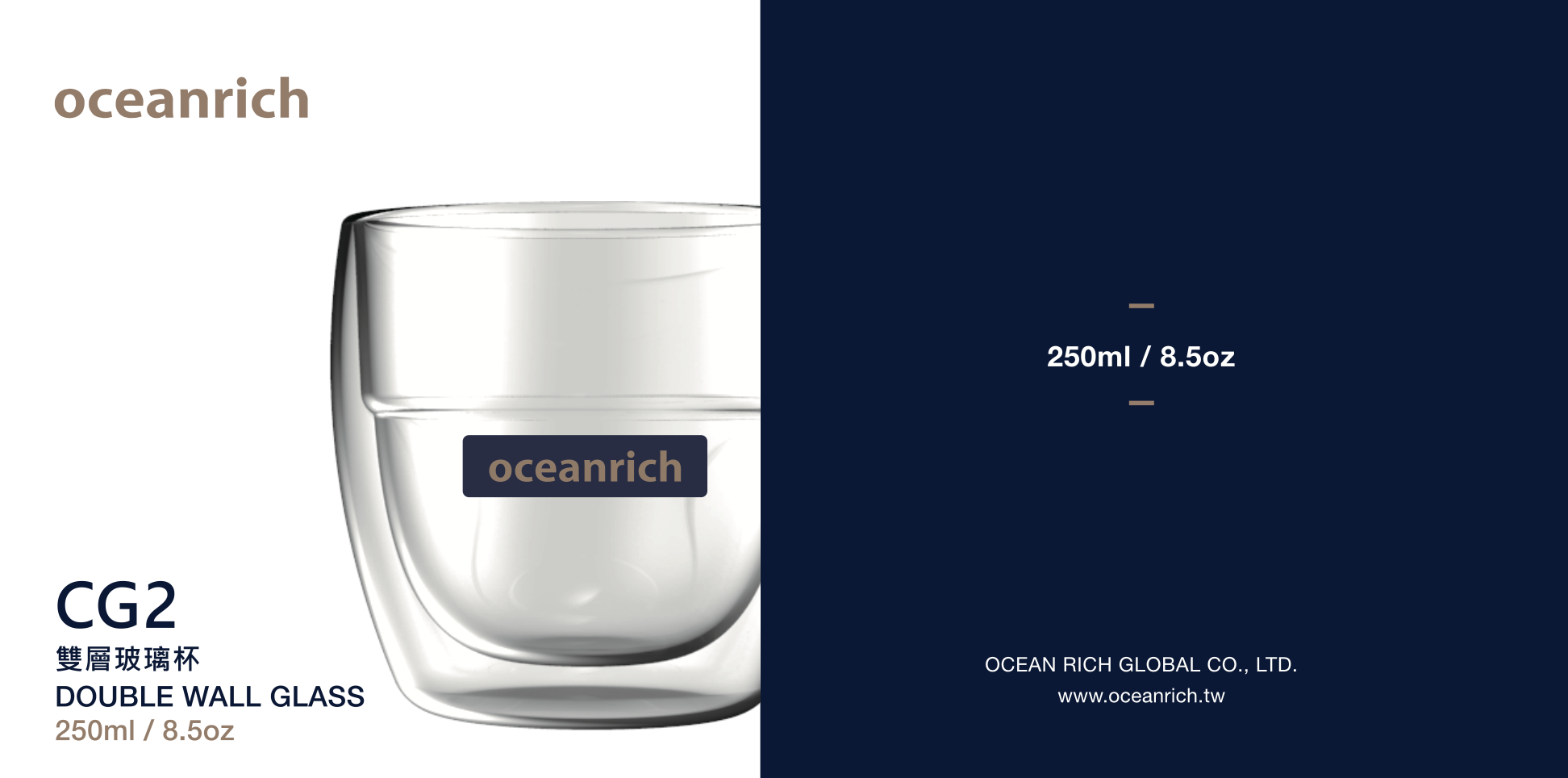 oceanrich雙層隔熱玻璃杯 (250ml) 隔熱不燙手,裝冰飲不流汗